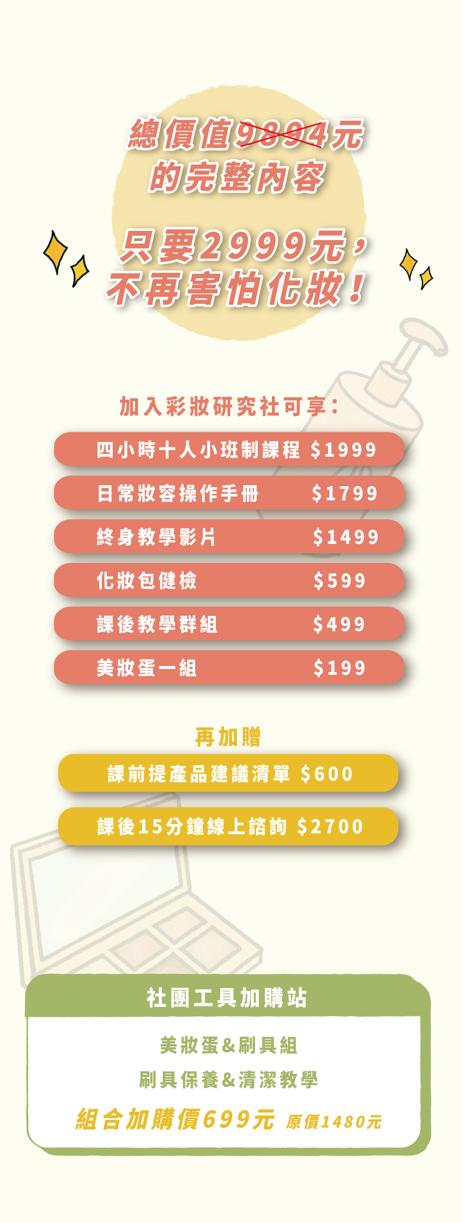 首頁 未分類 彩妝研究社 特價 彩妝研究社NT$2,999 – NT$4,899 課程 1月班 早鳥優惠價1月班 原價1月班 早鳥優惠+刷具組1月班原價+刷具組請選取一個選項1月班 早鳥優惠價1月班 原價1月班 早鳥優惠+刷具組1月班原價+刷具組清除 彩妝研究社 數量 加入購物車 貨號: 不提供 分類: 未分類 描述 額外資訊 描述 額外資訊 課程 1月班 早鳥優惠價, 1月班 原價, 1月班 早鳥優惠+刷具組, 1月班原價+刷具組 相關商品 Sollicitudin Nibh NT$25 加入購物車Quick view icon Semper Risus NT$15 加入購物車Quick view icon Congue Quisque NT$15 加入購物車Quick view icon Varius Tincidunt NT$45 加入購物車Quick view icon